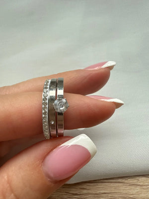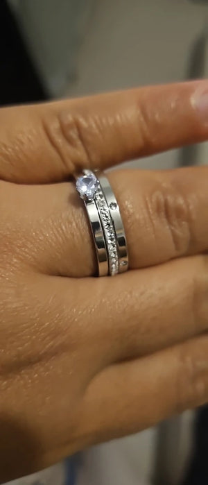 30-Day Money-Back Guarantee on Classic Zircon Steel Ring Set