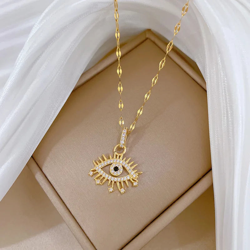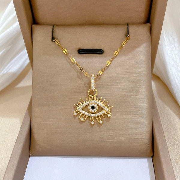 Shiny zircon evil eye pendant adds subtle edge and symbolism. Pair with tees or a blazer to feel protected and confident before meetings or nights out.